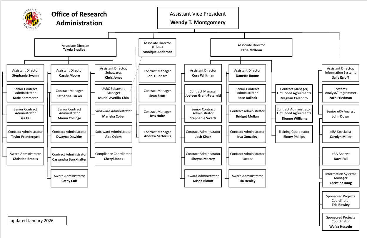 The Subaward Team issues new subawards and modifications to subawards under sponsored research projects administered by ORA. Please find your Department’s Contract Administrator to determine the ORA staff member to contact for questions about any subawards for your department.